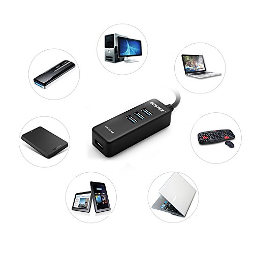 Ten Times as Fast as the High Speed of USB 2.0 • BESTEK USB 3.0 4-port hub is capable of transferring date at the speed of 5Gbps and more than ten times as fast as the high speed of USB 2.0, backward supporting 12Mbps full speed and 480Mbps high speed. Backward Compatible with USB 2.0 and 1.1 • This super-speed USB 3.0 hub is backward compatible with USB 2.0 and 1.1. It's no problem to connect USB 1.1, USB 2.0 and USB 3.0 devices, wider application than USB 2.0 hubs. Handy and Portable Transfer Tool • BESTEK USB 3.0 4-port hub is an ultra mini, handy and portable transfer tool, connecting your USB multiple devices to a host system anywhere and enabling one-step attachment and removal of all the devices. Plug and play, directly power from your laptop. Package List: • 1 x 4 Port 3.0 Hub(Black) • 1 x User Manual NOTE: This item is for data sync only, not applied to charge iPads/tablets and other USB devices.