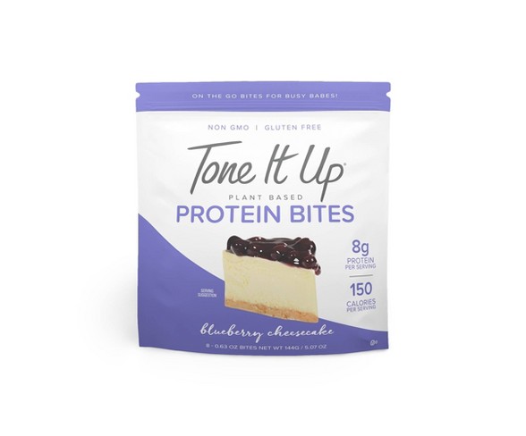 Description Tone It Up Protein Bites support the busy babe with a healthy and active lifestyle! Whether you are kickstarting your day, in need of a mid-day snack, or refueling after your workout, these individually wrapped bites conveniently fit into whatever life throws your way. These delicious bites are plant-based, non-GMO and provide you with just enough clean protein for an added boost throughout your day. Your beautiful body deserves it.Contains: AlmondsConsistency: ChewyProtein Grams per Serving: 8 gramsStore: In a Dry location at Room temperatureForm: PiecesState of Readiness: Ready to eatPackage Quantity: 8Package type: Multi-pack single servingsNet weight: 5.07 ouncesPrimary dietary ingredient: Plant-based proteinProtein type: Plant-based proteinExterior container material: PlasticBlueberry Cheesecake FlavorGluten freePlant basedNon-GMOPerfect for on the go! Estimated shipping dimensions: 6.45INCH X 3.39INCH X 7.48INCH DPCI : 094-08-0604 UPC : 810745030701 TCIN : 75668399 Estimated shippimg weight: 0.36POUND