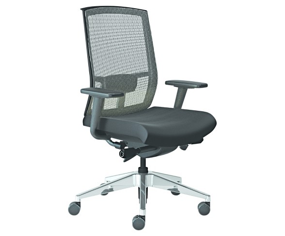 Description Is the must have chair for any office environment. With height- and width-adjustable T-arms and polished aluminum base this stylish chair will fit any user. Standard with synchro-tilt mechanism, height adjustment and seat slider. Easy installation. Recommended Applications: General Office & Task; Executive & Management; Conference, Training & Meeting; Seat/Back Color: Silver/Black; Arms Included: Yes; Arm Style: T-Arm.Number of Pieces: 1Seats up to: 1Dimensions (Overall): 41.75 inches (H) x 27 inches (W) x 25 inches (D)Material: Steel (Frame)Weight: 50.7 poundsAccessories Included: CastersMinimum Height, Floor to Seat Top: 17.5 inchesMaximum Height, Floor to Seat Top: 21 inchesFeatures: Adjustable Arms, Adjustable Depth, Adjustable Height, Adjustable Tilt, Lumbar Support, SwivelsFurniture Legs Material: AluminumUpholstery: UpholsteredSeat Back Dimensions: 22.25 inches (H) x 18 inches (W)Certifications: ANSI/BIFMA CertifiedMaterial: Textile 1: FabricMaterial: Textile 2: MeshAdjustability: AdjustableHolds up to: 300 poundsSeat Dimensions: 19.5 inches [W], 19.5 inches [D], & 21 inches [floor to seat top]Care & Cleaning: Spot or wipe cleanWarranty: Lifetime limited warranty. To obtain a copy of the manufacturer's or supplier's warranty for this item prior to purchasing the item, please call Target Guest Services at 1-800-591-3869Synchro-tilt mechanism.Height adjustment.Seat slider.Tilt tension and tilt lock.Height- and width-adjustable T-arms and back support. Estimated shipping dimensions: 17.52INCH X 28.75INCH X 28.0INCH DPCI : 081-16-1005 UPC : 760771407025 TCIN : 51415472 Estimated shippimg weight: 50.7POUND