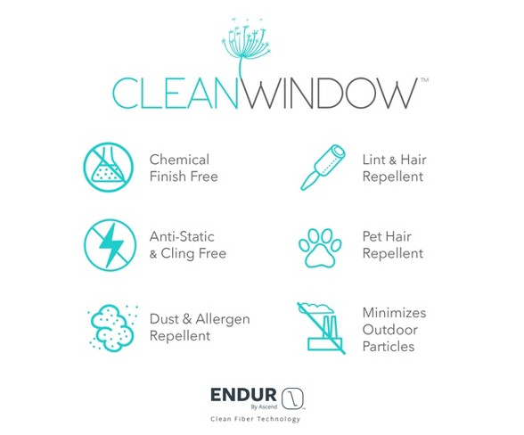Description Guided by the belief that wellness starts in the home, Clean Window Leno Weave Stripe Anti-Dust Curtain Panels are interwoven with chemical finish-free ENDUR by Ascend active fibers that inhibit static and cling to help minimize allergens, dust, hair, pet dander, and environmental irritants for a healthier room environment. A decor must-have for allergy sufferers, pet lovers, and wellness devotees, Clean Window utilizes patented technology to deliver static-free, cling-free, hair and lint repellent window treatments that enhance both your wellbeing and home decor. The light and airy semi-sheer leno weave fabric gently filters light while enhancing privacy. Pole top rod pocket design allows for simple slide-through installation on curtain rods up to 1 ½" in diameter. Sold as individual panels. Measure carefully before selecting your desired size and quantity. Rod not included. The ENDUR by Ascend mark and logo are trademarks or registered trademarks of Ascend Performance Materials Operations LLC. Machine wash cold on gentle cycle. Use non-chlorine bleach when needed. Tumble dry on low heat, using a cool iron as needed.Number of Pieces: 1Dimensions (Overall): 95 inches (L) x 52 inches (W)Care & Cleaning: Machine wash, non chlorine bleach when needed, machine dry, iron as neededTextile Material: 100% PolyesterIncludes: 1 curtain panelAccommodates Pole Size: 1.5 inchesIndoor/Outdoor: IndoorTextile construction: Plain weaveHanging style: Rod pocketLight filtration: Light filteringLeno weave stripe design on an airy semi-sheer fabricENDUR by Ascend active fibers inhibit static and clingRepels dust, lint, hair, pet dander, allergens, and outdoor irritantsIdeal for pet owners and allergy sufferersRod pocket allows for simple slide-through installation on curtain rods up to 1 ½" in diameterPanels sold individually. Measure carefully prior to purchase. (Image features 2 panels) Estimated shipping dimensions: 8.0INCH X 1.18INCH X 10.0INCH DPCI : 068-04-8963 UPC : 029927549454 TCIN : 54307293 Estimated shippimg weight: 1.25POUND