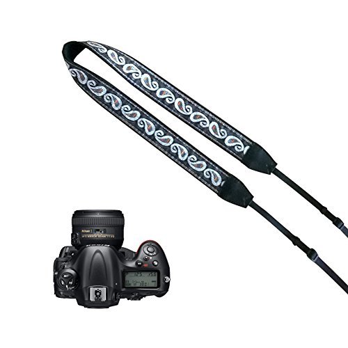This is a very colorful and durable paisley pattern cotton camera neck strap for your DSLR, SLR, digital camera ETC. Fabric Length - 30 inches / 76 cm Adjustable Webbing Length (Each) - 14.5 inches / 37 cm Total Length - 59 inches / 150 cm Width of Fabric - 1.5 inch / 3.8 cm; Width of Webbing - 3/8 inch / 1 cm