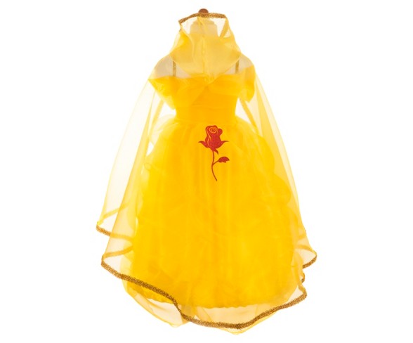 Description Be the Belle of the ball in our traditional Belle gown. This dress features gathered organza layered over beautiful yellow satin. Our off-the-shoulder design is accented with the iconic red rose. The size-flexible bodice is made from comfortable crushed panne velvet, and the elastic glitter straps provide size flexibility to easily fit growing children. The matching organza cape completes this iconic princess look with gold trim and the red rose emblem on the back.Suggested Age: 3-8 YearsSizing: KidsTextile Material: 100% PolyesterCare & Cleaning: Air dry, do not iron, do not bleach, machine washGreat for both dress up play and costumingPromotes imaginative play and creativityHigh-quality materials and construction for durable, lasting funMachine washable Estimated shipping dimensions: 24.0INCH X 34.0INCH X 1.0INCH DPCI : 086-05-1293 UPC : 771877980015 TCIN : 52801956 Estimated shippimg weight: 0.85POUND