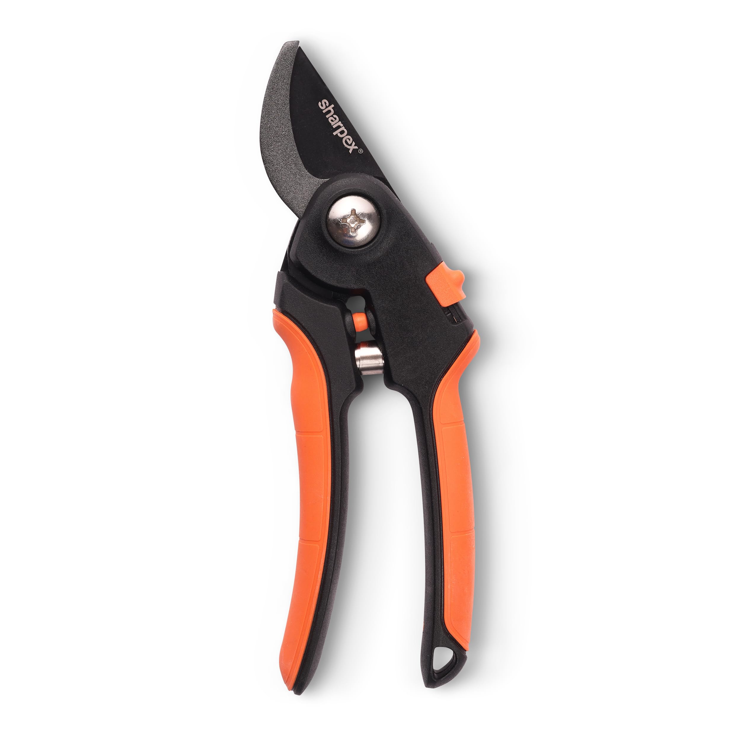 Sharpex Heavy Duty 8 Inch Garden Bypass Pruning Shears feature a razor-sharp SK5 carbon steel blade with a Teflon non-stick coating for rust resistance and effortless cutting. Designed with ergonomic, non-slip handles, these lightweight yet durable shears reduce hand strain and provide superior control. Ideal for professional and home gardeners alike, they excel at trimming plants, flowers, and branches, making them a top-rated, essential gardening tool.