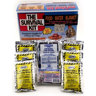 Description Ready America™ Survival kit has basic supplies needed for a person for 3 days in an expandable bag or box and has a shelf life of 5 years. Ready America™ Survival kit contains 1 lightweight, compact blanket 6 individually sealed bags of fresh drinking water and 1 food bar that tastes like a cookie. Kit with a shelf life of 5 years can be used by a person for 3 days. Emergency kit case type: Box People count: 1 person Get the basic life supplies in an expandable bag or box, enough for 1 person for 3 days U.S. coast guard approved Includes: 1 lightweight, compact blanket (size 52" x 84" which retains 90% of body heat and can double as rain poncho or shelter), 6 individually sealed bags of fresh drinking water and 1 food bar, 5 year shelf life 6 per pack Bilingual packaging (English/Spanish) Long Shelf LifeThanks to its 5-year shelf life, this Ready America one-person survival kit gives you a handy solution for emergency situations. Set it in an easily accessible closet or corner to keep it on hand when needed, or expand it to suit your personal survival needs with ease. Ample HydrationThis Ready American one-person survival kits provides six individually sealed containers of fresh water, so you can stay hydrated even if your water source fails during storms or other catastrophic events. It also includes a single 2,400-calorie food bar, so you can keep up your strength if you're waiting to be rescued. Stay WarmThis convenient kit also includes a 52-inch x 84-inch blanket that helps you retain up to 90 percent of your body heat, keeping you warm in the case of electrical failure. This blanket also doubles as a shelter or rain poncho, making it an excellent choice if you need coverage while checking on neighbors or seeking out help. Specifications Serves Number of Employees : 1 Brand : Ready America Customizable : No Weight : 8.60 lbs. per Pack