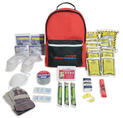 Description Ready America™ Grab 'n Go 3 Day tornado emergency kit helps you survive storms or life threatening situations and is for 2 persons. Ready America™ Grab 'n Go 3 Day tornado emergency kit comprises 5-year shelf life food and water, safety goggles, first aid kit, bio-hazard bag and important documents holder, leather gloves. Kit can be kept in tornado safe shelter location. Emergency kit case type: Carry case People count: 2 person Weather brings its own set of elements providing unexpected emergencies and you need to be prepared for them Includes: 5-year shelf life food & water, includes safety goggles, leather gloves, first aid kit, bio-hazard bag and important documents holder, keep in your hurricane safe shelter location, survival blankets and body warmers Provide for two people during a weather emergency with this Ready American Grab 'n Go three-day tornado backpack kit. This kit has everything you need in an emergency, including food and water and first-aid supplies. Everything is packed in a backpack that can be stowed in a car trunk or closet. Specifications Serves Number of Employees : 2 Person Brand : Ready America Customizable : No Weight : 8.90 lbs. per Each