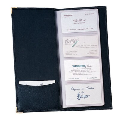 Description Royce Black Leather Business Card Holder with room to store up to 96 cards Top Grain Nappa Leather 2.75"H x 4"W x 0.5"D Specifications Type : Business Card Holder Brand : Royce Leather Customizable : No Weight : 0.69 lbs. per Each