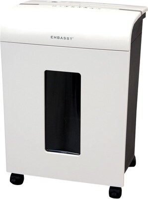 Description Embassy 14 Sheet Micro-cut Paper Shredder White Microcut shred size for optimum security Smaller waste particles means you empty less often Shreds Credit Cards Overheat indicator protects motor 5 gallon waste bin capacity Easy to empty pull out basket 1/Each Specifications True Color : White Shredder Capacity (sheets per pass) : 14 Wastebasket Capacity (Gallons) : 5 Capacity in Gallons : 5 Shredder Type : Personal Auto-Feed Shredding : No Shredder Cut Type : Micro Shreds Credit Cards : Yes Brand : Intek Customizable : No Weight : 19.60 lbs. per Each