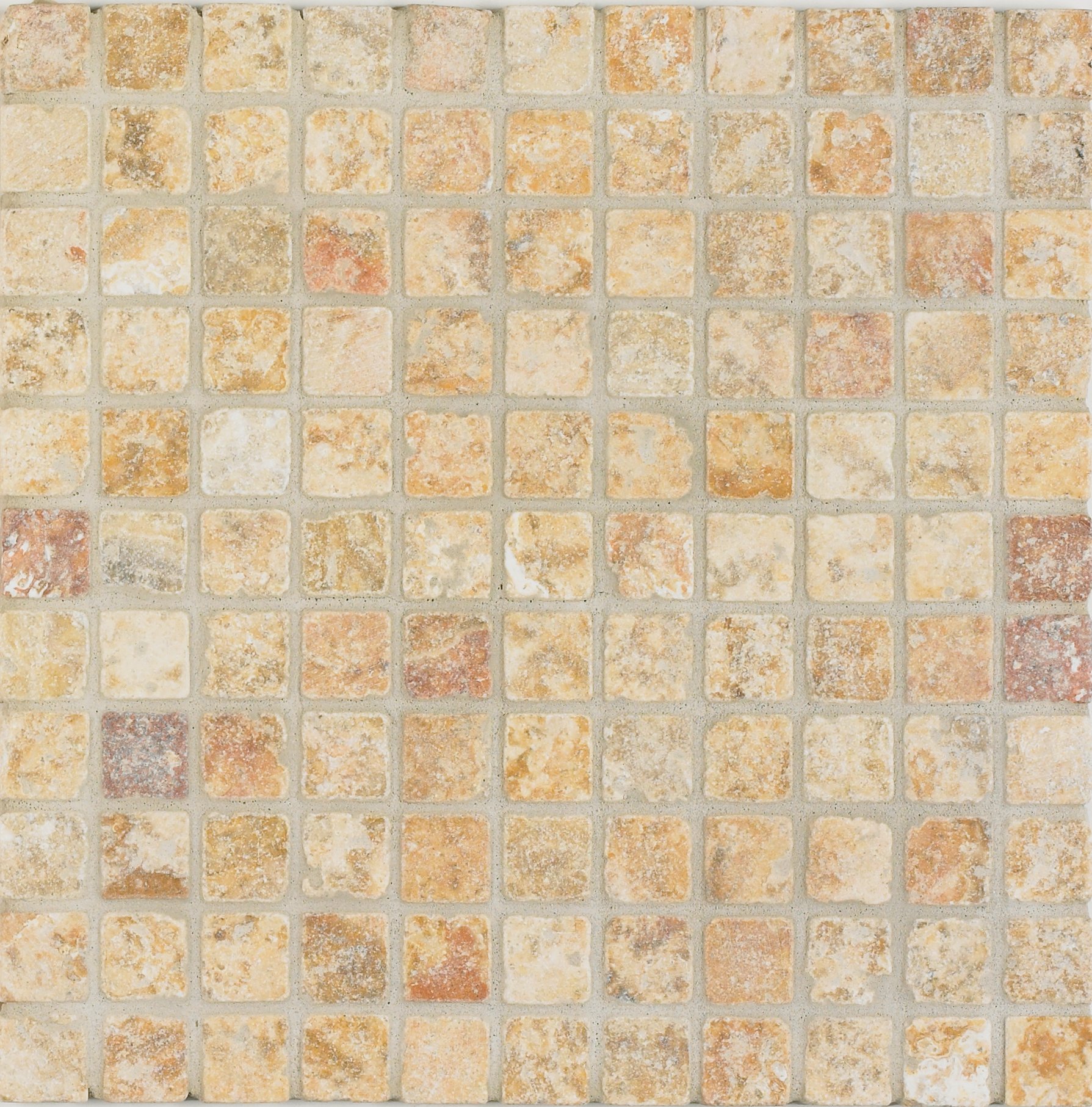 12 by 12-Inch Mosaic Made from 1 by 1-Inch Tumbled Travertine Tiles, Scabos, 10-Pack