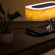 The Bonsai Modern LED Bedside Smart Table Lamp combines a warm 200-lumen LED light with stepless touch dimming and a 30-minute sleep mode timer. It features a powerful 20W omni-directional Bluetooth speaker with TWS stereo pairing and a Qi wireless charging pad compatible with all Qi-enabled devices. Crafted with a polished wood base and acrylic shade, this energy-efficient lamp is designed for modern home and office environments, delivering multifunctional convenience and sleek aesthetics.