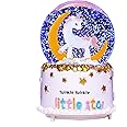The VECU 100 MM Automatic Snowfall Cartoon Moon Music Box is a beautifully crafted musical snow globe designed for children. Featuring a charming unicorn on a crescent moon, it plays enchanting music while showcasing a mesmerizing snowfall effect and colorful lights. Made from high-quality materials, this snow globe serves as a perfect gift for birthdays and holidays, ensuring a delightful experience for kids and a hassle-free return policy for parents.