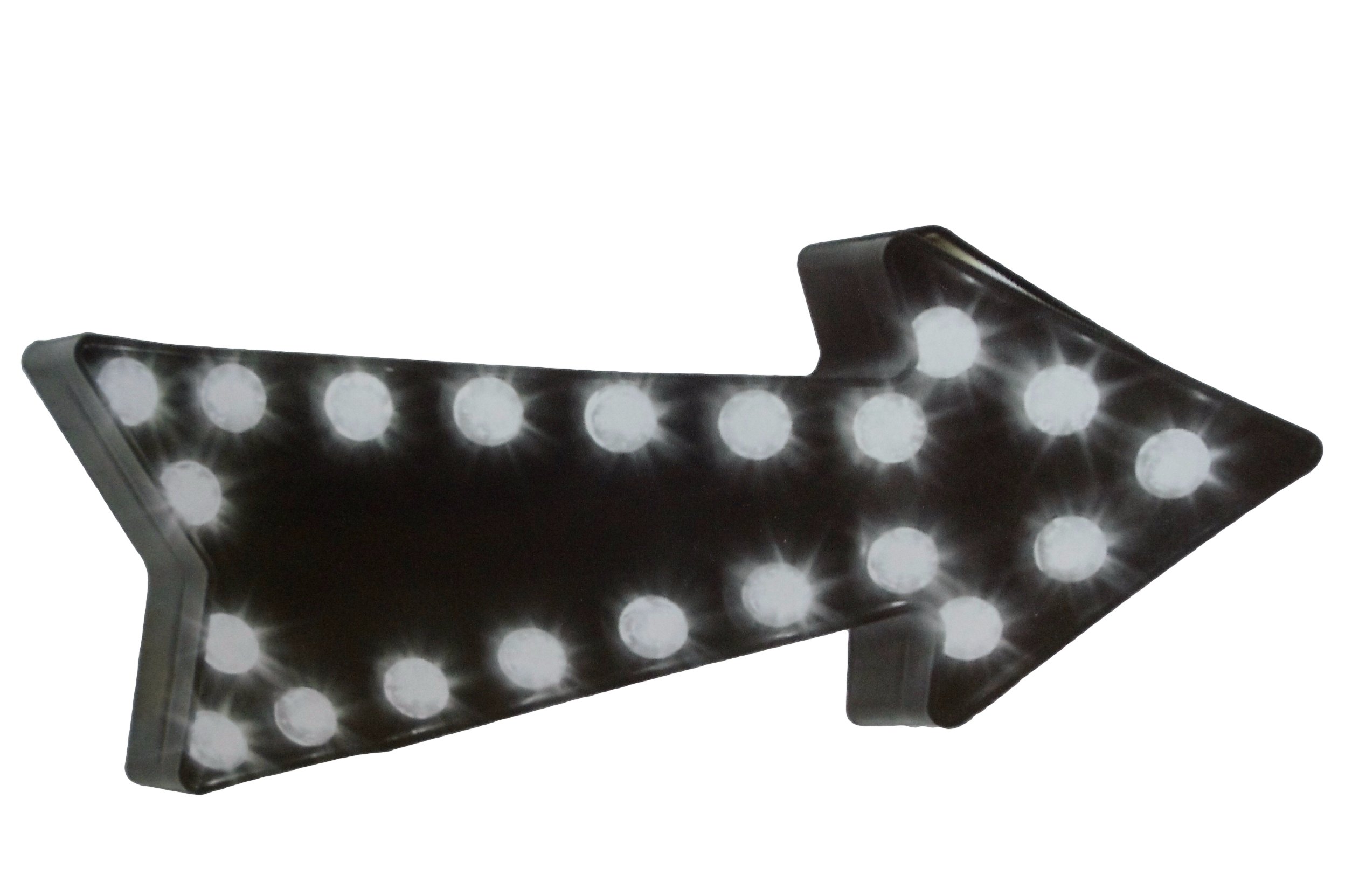 The Marquee LED Light Up Black Arrow Sign features 21 warm white bulbs, a lightweight design for easy hanging, and cordless functionality for ultimate portability. Perfect for adding a touch of charm to any space, this sign is both a decorative piece and a practical lighting solution.