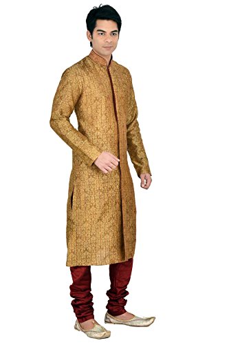 Bring out this Dupion Silk Kurta in Beige. Stylized with Resham and Patch Border Work. Accompanied by a Dupion Art Silk Churidar in Maroon. Do note: Half to one inch may vary in measurement. Accessories shown are for presentation purposes. (Slight variation in actual color vs. image is possible).