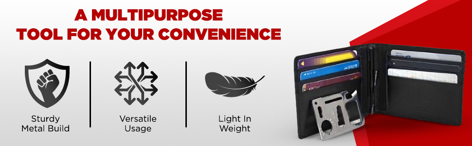 The Royals Multi Function Camping Tool is an 11-in-1 pocket-sized survival tool made from durable stainless steel, designed for outdoor enthusiasts. Measuring approximately 69 x 45 x 2mm and weighing just 200 grams, it includes essential tools like a knife and bottle opener, making it perfect for camping, hiking, and emergency situations. Comes with a stylish leather carrying pouch for easy transport.
