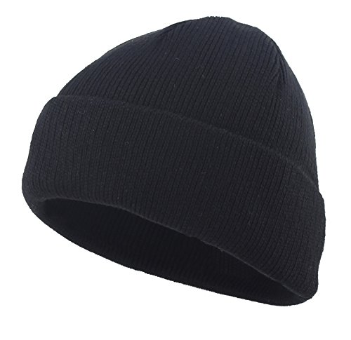 Fomas™ Men's Knitted Plain Cuff Beanie Hat, L, Black