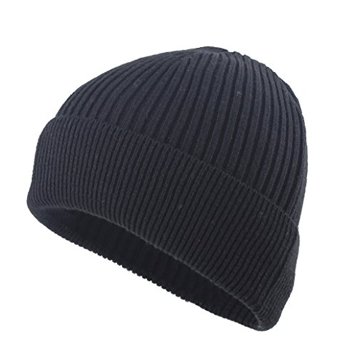 Fomas™ Men's Knitted Plain Cuff Beanie Hat, L, Black