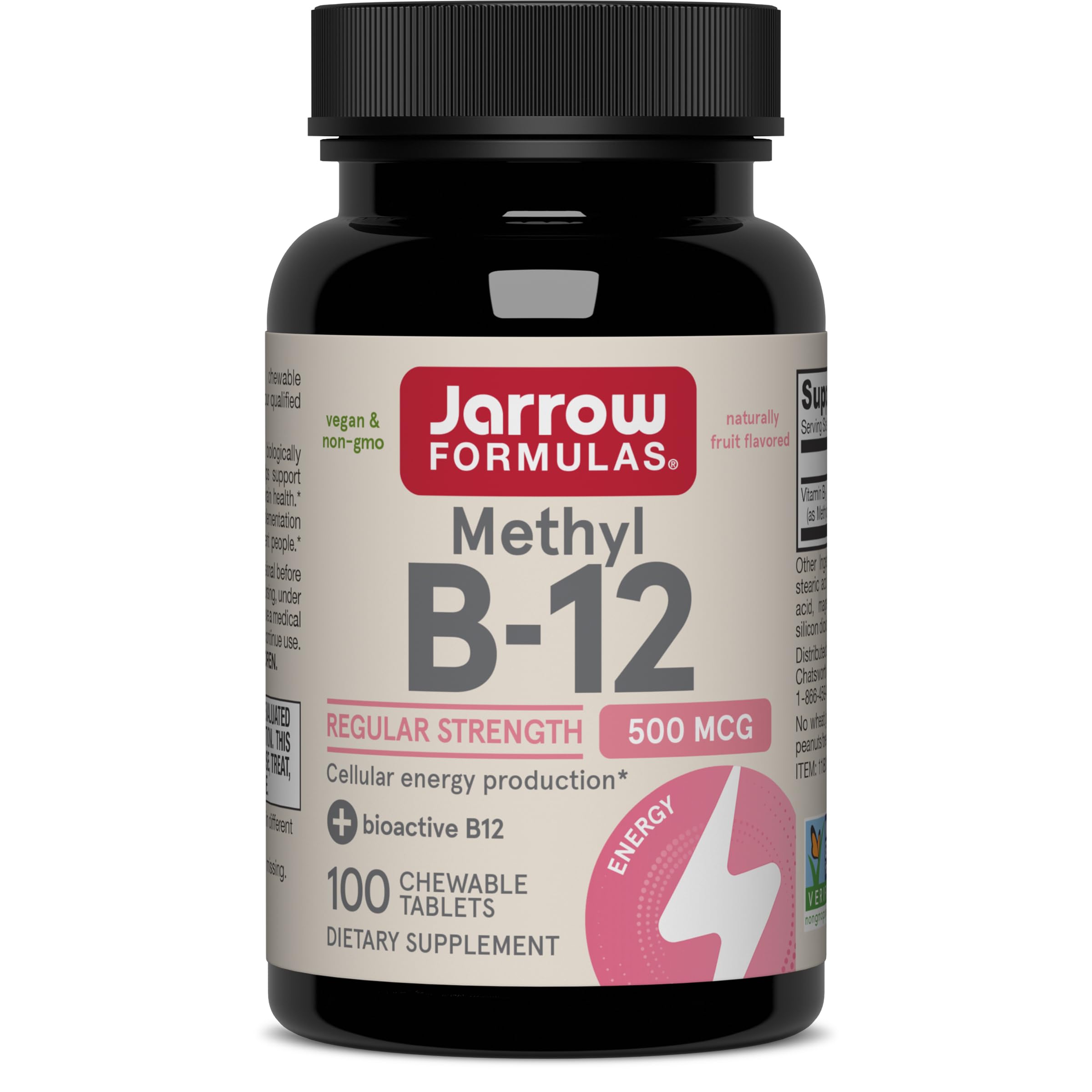 Jarrow Formulas Methyl B-12 delivers 500 mg of biologically active Vitamin B12 in a convenient cherry-flavored chewable tablet. Designed for adults seeking enhanced cellular energy, brain health, and sleep support, this vegan, non-GMO supplement is free from common allergens and provides a 100-day supply for consistent daily use.