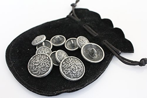 YCEE 11 Piece Antique Silver Vintage Metal Blazer Button Set - flora - for Blazer, Suits, Sport Coat, Uniform, Jacket