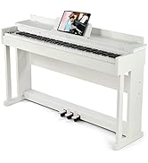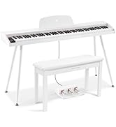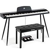 The MUSTAR Digital Piano features a full 88 semi-weighted key keyboard with touch sensitivity, delivering an authentic playing experience. It boasts 800 tones, 600 rhythms, and 80 demo songs powered by DREAM source technology, enhanced by built-in stereo speakers and a metal sustain pedal. Bluetooth connectivity enables wireless lessons and playback, while the included double-X stand, waterproof padded case, and adjustable height make it perfect for beginners seeking portability and professional sound quality.