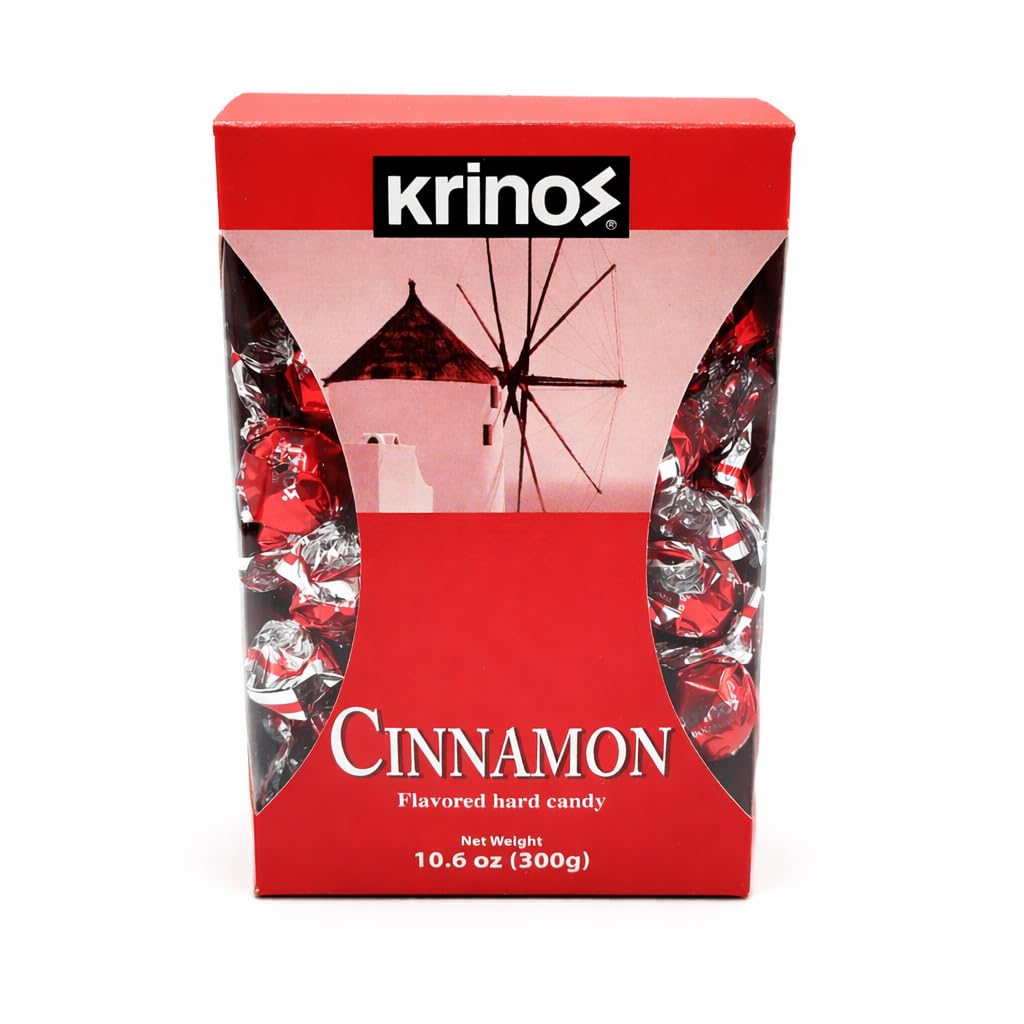 Krinos Cinnamon Hard Candy is a 10.6 oz pack of individually wrapped, all-natural hard candies imported from Greece. These candies offer a delightful blend of cinnamon spice and sweetness, making them perfect for parties, gifts, or personal enjoyment.