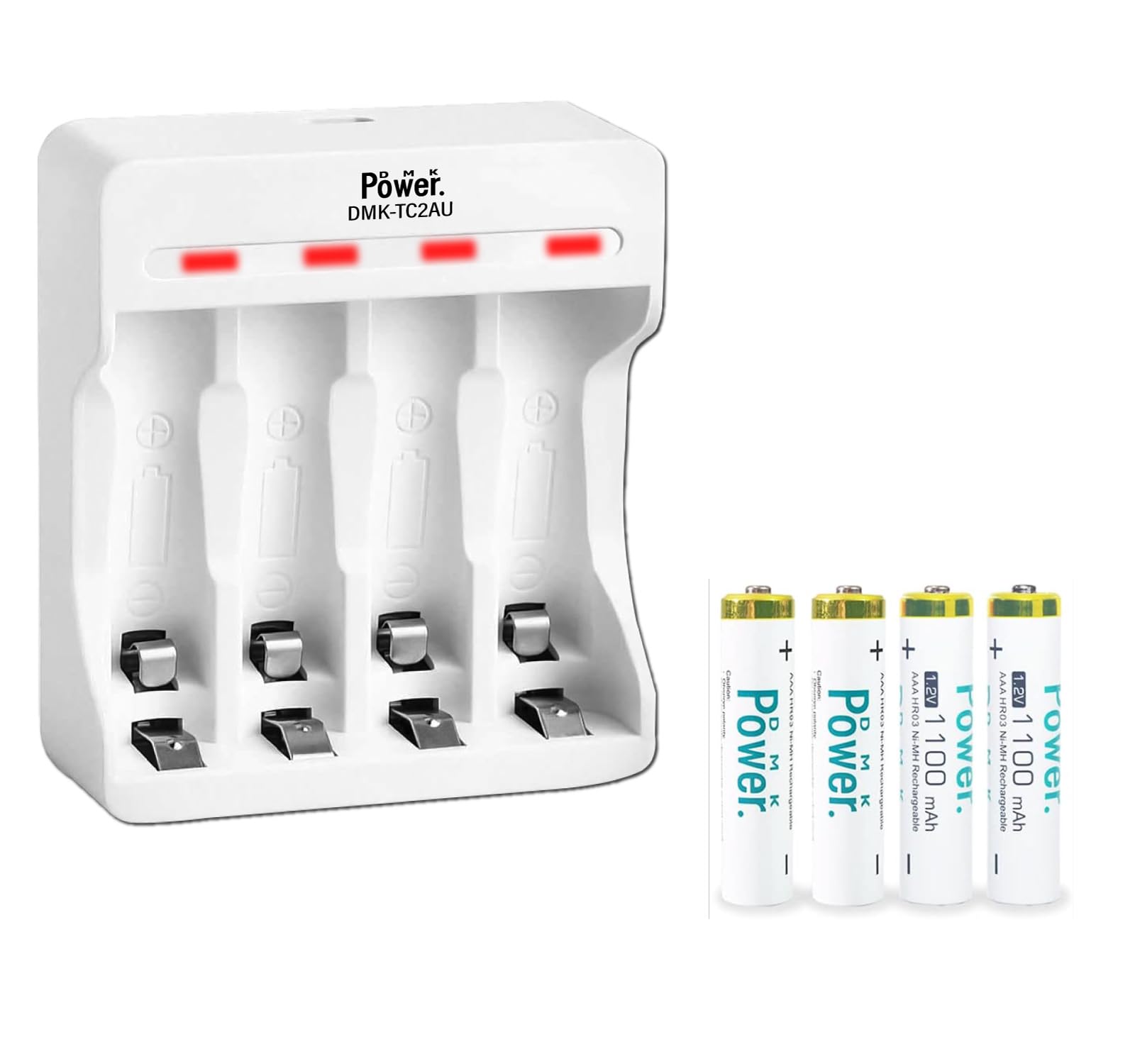 DMK Power’s 4-pack AAA rechargeable batteries (1100mAh, 1.2V) paired with a smart USB charger featuring 4 independent slots offer fast, safe, and eco-friendly charging. Designed for versatile use across household electronics, this set supports over 1200 recharge cycles and includes multi-layer safety protections, making it a sustainable and reliable power solution for the modern professional.