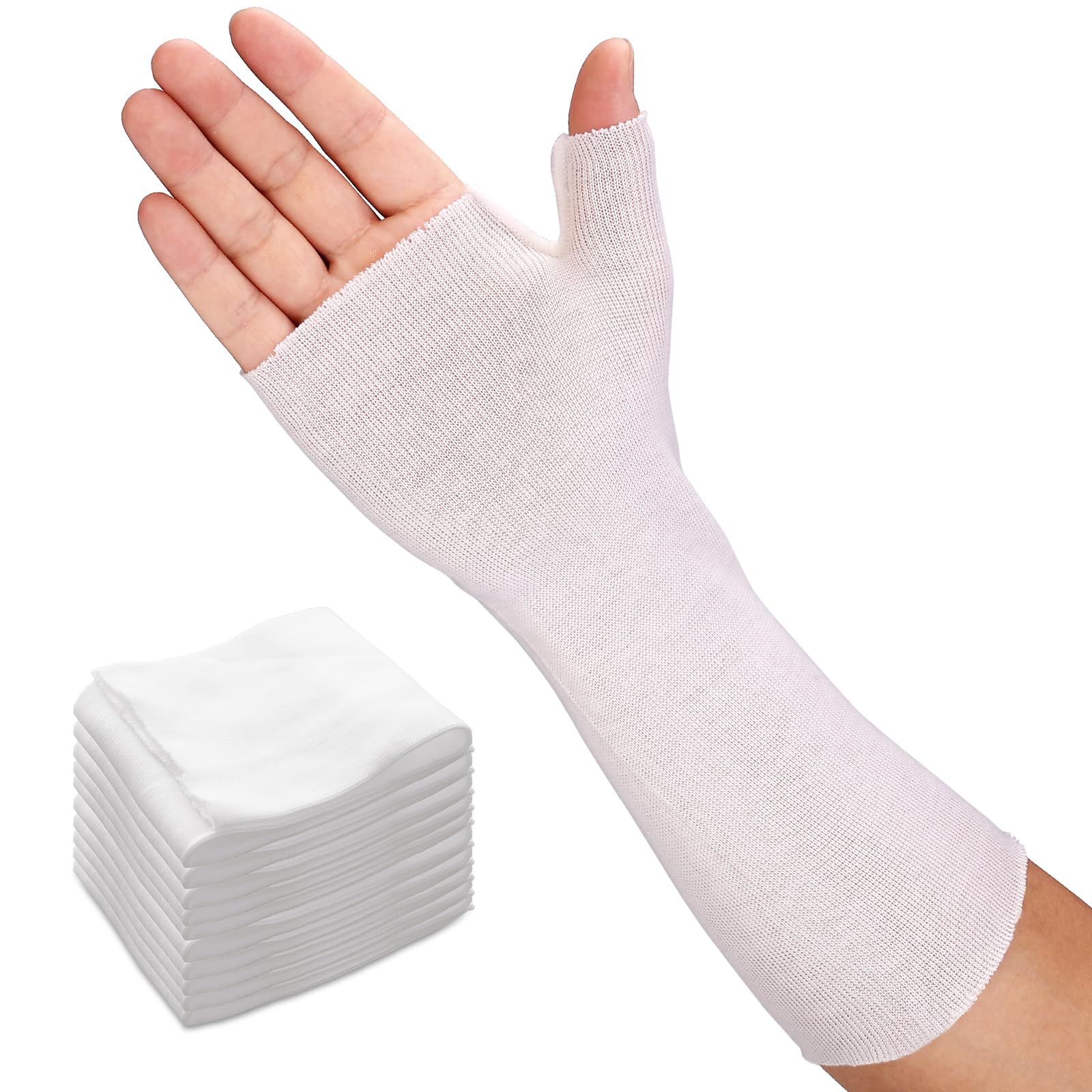 Velpeau Hand Socks for Splint are ultra-thin, breathable cotton-polyester liners designed to be worn under wrist and arm braces. Available in multiple sizes with a thumb cutout, these washable and reusable sleeves provide irritation-free comfort, moisture control, and a lightweight barrier between skin and splint. Sold in convenient 10-packs, they ensure continuous freshness and protection for men and women during recovery.