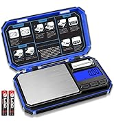 Great little scales, easy to use, nice & compact, with a fairly rigid case for protection. The 50g calibration weight is a nice touch. However, the design leaves no room around the actual scale, to cater for larger objects ie Packs of Pokemon Cards, that hang over the scales (especially Long Crimp Packs). This leads to variances in the weight depending on how they are laid on the scales. Adding a little riser table to fit the size of the scale, would make this a fantastic buy.