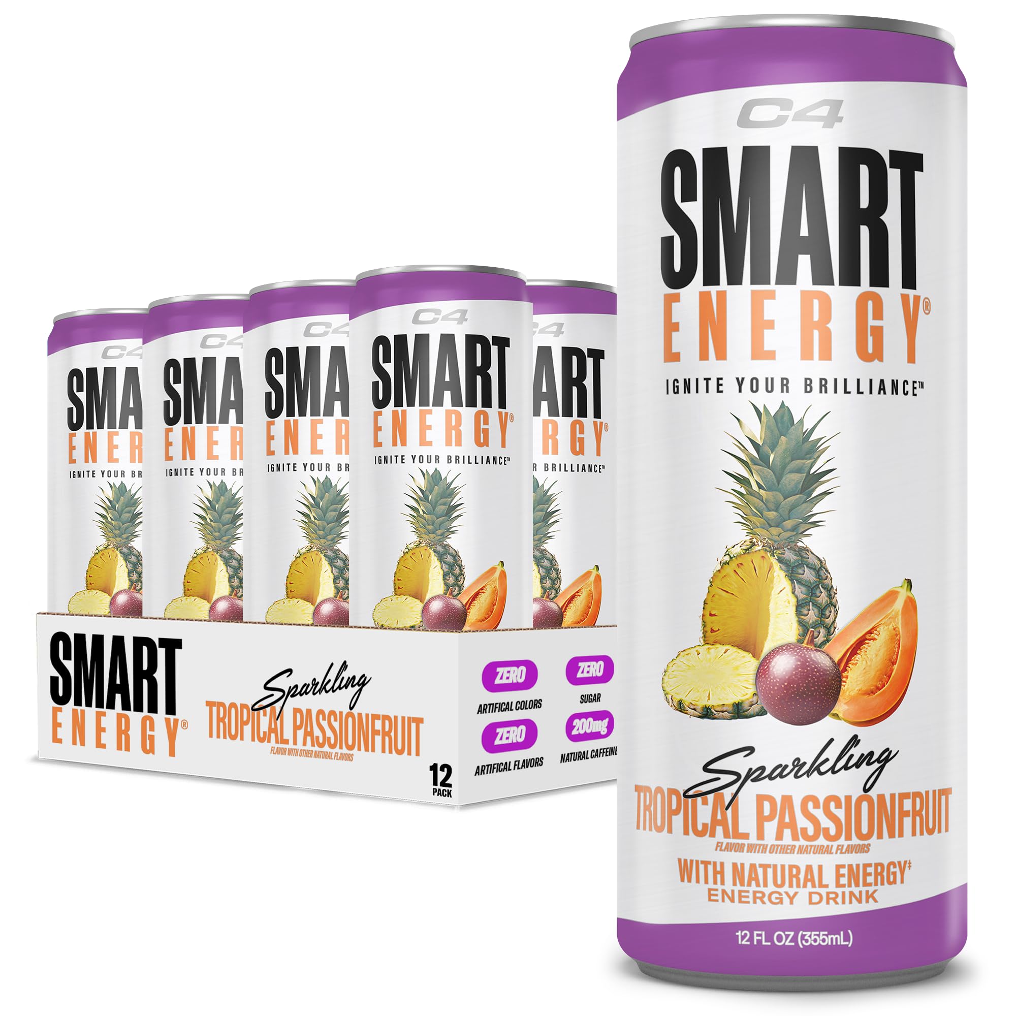 Cellucor C4 Smart Energy Drink delivers 200mg of caffeine powered by natural tea leaves and enhanced with Cognizin nootropics to boost focus and cognitive performance. This zero sugar, zero calorie beverage offers a clean energy lift in a variety of bold flavors, trusted by millions since 2011 for pre-workout and all-day mental clarity.