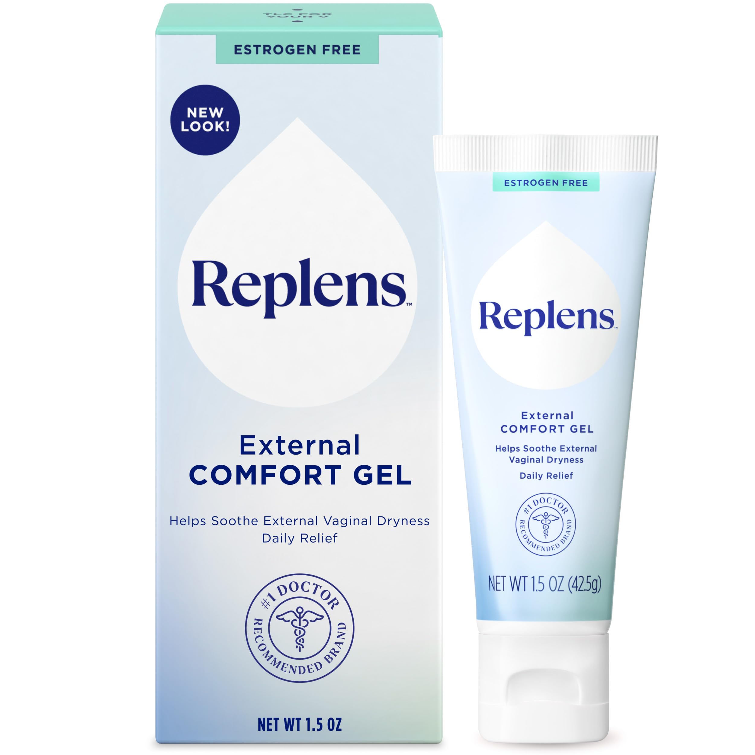 Replens Moisturizer External Comfort Gel is a 1.5 oz hypoallergenic, estrogen- and paraben-free vaginal moisturizer designed to relieve external vaginal dryness. Featuring the Hydrapro Complex™ with Vitamin E and Pro-Vitamin B5, it offers fast-absorbing, non-sticky hydration that soothes irritation and supports intimate comfort for women of all ages.