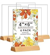 DunGu 3 Pack Acrylic Sign Holder 8.5x11-Clear Table Top Sign Holder with Wooden Base, Plastic Double-Sided Menu Flyer Display Stands, Clear Picture Paper Frames for Restaurants Office Store Show Fair