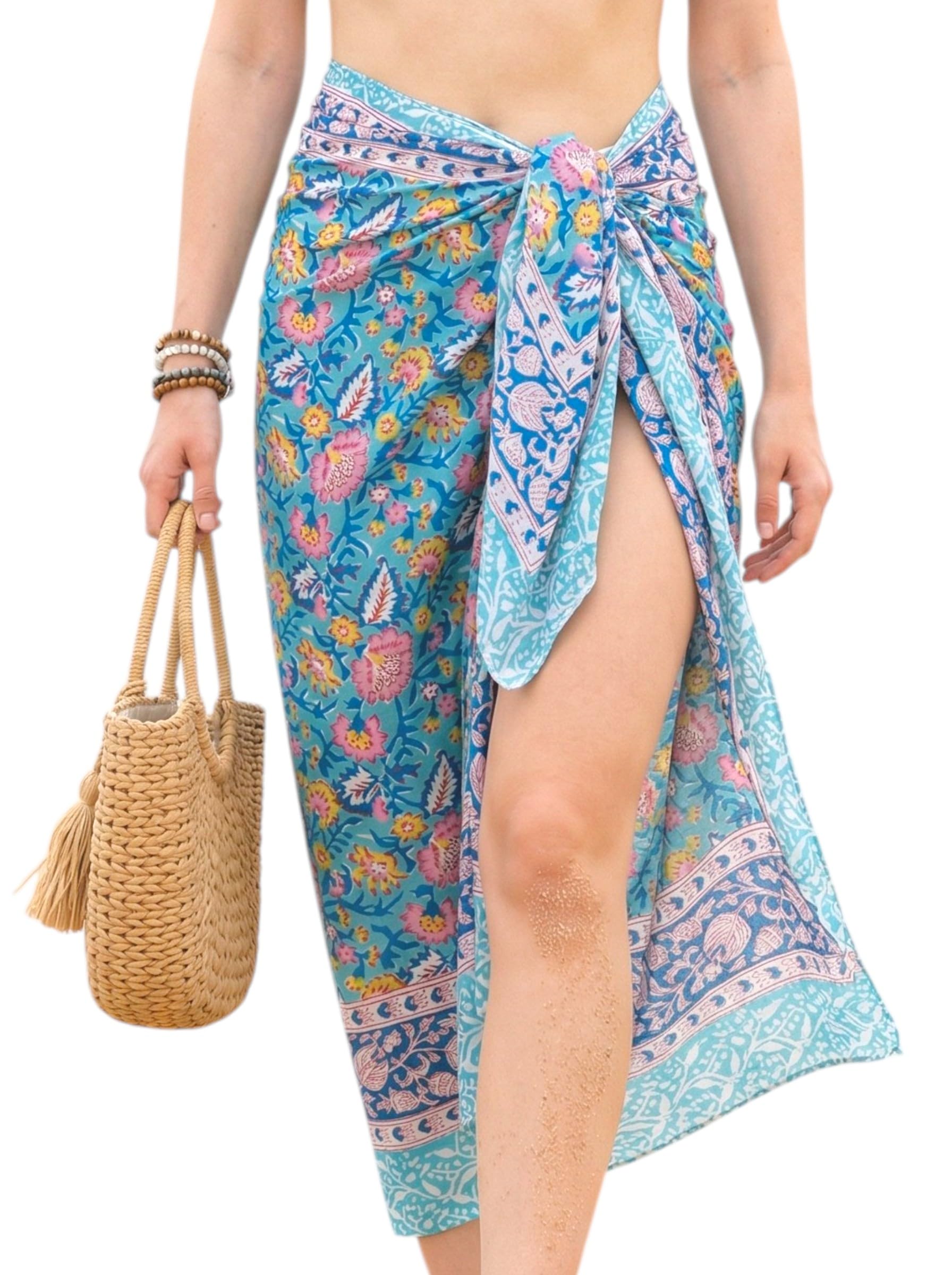 Beautiful sarong with hand block printing, This can be a versatile and unique choice for a cover-up with traditional block prints, such as paisley or floral motifs, in rich colors that evoke the beauty of ethnic art.