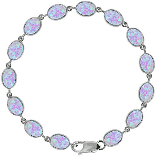 Stunning Ladies Solid Sterling Silver Gemstone Bracelet 7.5 inches long set with Cultured Opal