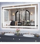 The WTTY LED Bathroom Mirror (60"x28") features advanced RGB backlit and front lighting with stepless dimming, anti-fog technology, and memory function. Built with 5mm tempered shatterproof glass, it offers both safety and style. Designed for easy wall mounting in either orientation, this modern vanity mirror transforms your bathroom into a personalized beauty sanctuary.