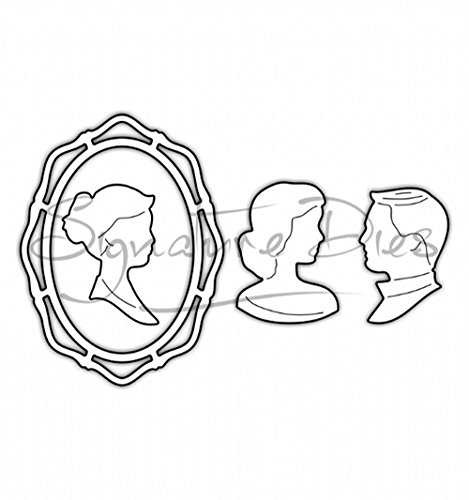 Whether you want a silhouette or wedgewood blue, these cameos will make lovely cards. We designed the man to be facing the opposite way so you can have 2 cameos on the card facing each other. Set of three dies. Size of frame die: 60mm x 80mm (approx.) Size of additional cameo heads: 26mm x 39mm & 29mm x 41mm (approx.) These dies work with most tabletop die cutting machines, such as the Cuttlebug, Big Shot, Vagabond, Grand Calibur, eBosser etc Please note this is for the cutting die only - the diecut shown is just to display what this die produces.
