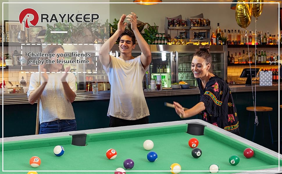 The RAYKEEP 48" Portable Pool Table is a stylish, sturdy, and compact billiard table made from engineered wood with a smooth felt surface. Designed for both adults and kids, it includes a full set of accessories and features adjustable legs for stability, making it ideal for home, game rooms, or bars. Easy to assemble and backed by a 180-day warranty, it delivers a professional playing experience in a space-saving design.