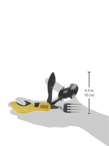 Don't take this one on your next five star dining experience. Instead, consider this handy 4-piece cutlery set for a trip into the wilds. Or a family picnic in the national park. That's all you need. This camping cutlery set includes an unlockable folding knife. It is a Multi-tool which includes a folding blade with a Blade under 3 inches. Folding multi-tool blade under 3 inches. Unlockable folding blade. Blade under 3 inches.