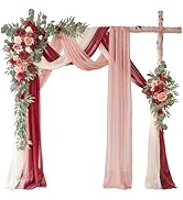 The WEIERYUE Artificial Wedding Arch Flowers Kit features two handmade floral swags (30"x20" and 24"x8") and a 600x73cm wrinkle-resistant chiffon drape in fairy white. Designed for both indoor and outdoor weddings, this kit offers a realistic, fade-proof floral display that requires no watering or maintenance. Lightweight and easy to install with included zip ties, it’s the perfect all-in-one décor solution for creating an elegant, lasting ceremony backdrop.