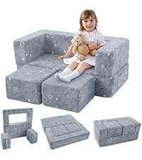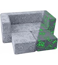 The MeMoreCool Modular Kids Play Couch Sofa is a versatile, glow-in-the-dark toddler loveseat that transforms effortlessly into multiple play configurations. Crafted from durable polyurethane foam with a soft, machine-washable velvet cover, it supports safe, active play while inspiring creativity. Its unique star and dinosaur glow design charges quickly under light and stays vibrant after washing, making it a standout, low-maintenance centerpiece for any child’s bedroom or playroom.