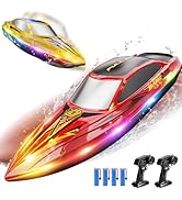 The DEERC Full Proportional Remote Control Boat combines a powerful 20+ MPH motor with advanced 2.4GHz frequency control, allowing interference-free multiplayer racing. Its durable ABS waterproof design features a cooling system and twist-locks for longevity, while LED shark eye lights and dynamic graffiti deliver standout style. Self-righting capability and battery alerts ensure safe, uninterrupted fun for kids and adults alike.