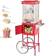 The VEVOR Commercial Popcorn Machine combines an 850W heating system with an 8oz stainless steel kettle to produce up to 48 cups of popcorn per batch. Designed with a durable cold-rolled steel frame and tempered glass doors, it features a 3-switch control panel for heater, stirrer, and warmer functions. Mounted on a mobile cart with 14-inch wheels and storage shelves, this machine ensures effortless operation, easy cleaning, and eye-catching presentation—perfect for high-volume venues like fairs, sports events, and fundraisers.