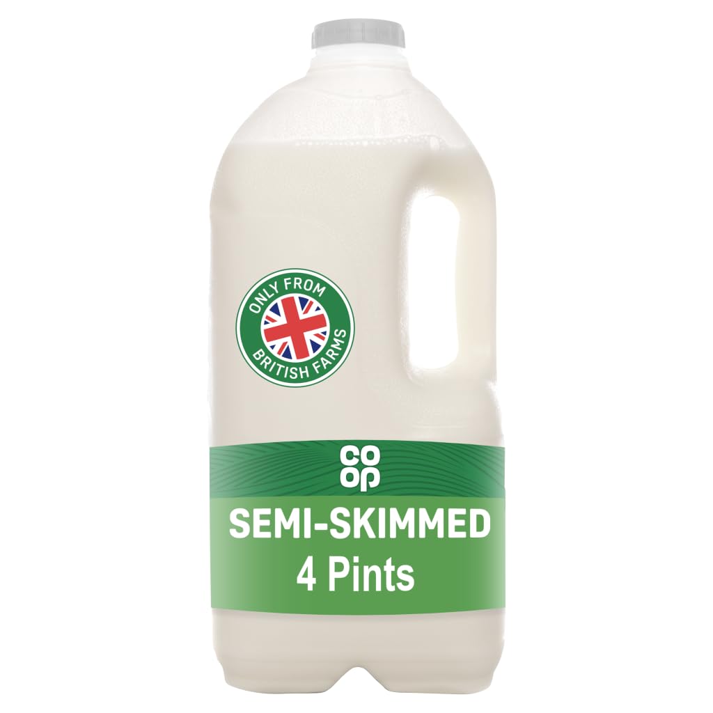 Co-op British Fresh Semi-Skimmed Milk offers 4 pints of locally sourced, calcium-rich milk with 1.8g fat per 100ml. This caffeine-free, nutrient-packed beverage supports bone health and sustainable farming, packaged in an eco-conscious carton ideal for everyday use.