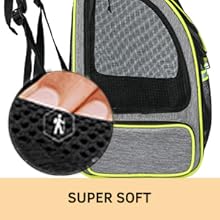 I loved the reflector lining on it for our afternoon and night time hikes. First the material was torn, but that’s okay nothing is perfect. I still tried to put my senior 15lb chihuahua in it To see if I needed a bigger one or just replace this one and he did not fit anyways. I think if he was 10 lbs or less it would be a perfect carrier. It had a couple pockets on it which was convenient and the sides opened so the pet can walk in and out easily.