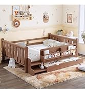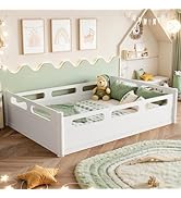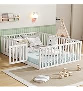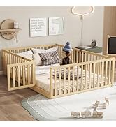 This espresso-finished Queen Size Montessori Floor Bed Frame by Bellemave features an 81.8"x63.1" footprint with 8 durable wood slats and a center support bar, supporting mattresses 4-6" thick and up to 400 lbs. Designed with a 17.5" high safety guardrail and a removable door, it offers a secure, creative sleep environment. Crafted from high-quality pine wood and MDF, it’s CPC certified for child safety and assembles easily without hassle.