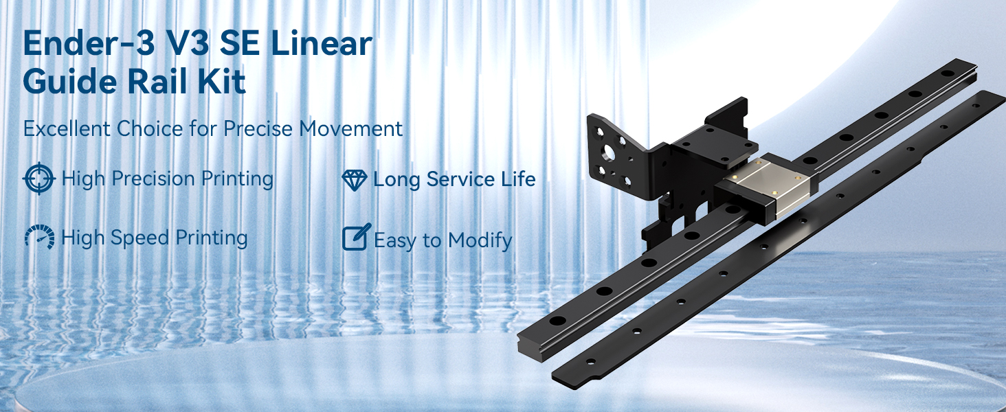 The Creality Upgrade Ender-3 V3 SE Linear Guide Rail Kit features an 11-inch MGN12 linear rail made from high carbon chrome steel, delivering high precision, reduced vibration, and faster printing speeds. Designed exclusively for the Ender-3 V3 SE, this durable, low-noise, and easy-to-install upgrade enhances print quality and extends the lifespan of your 3D printer.
