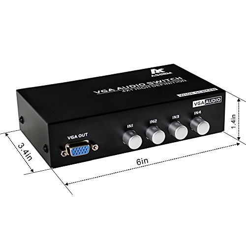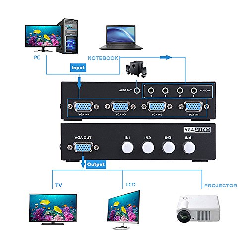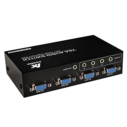 This ASSEM VGA switch allows you to connect multiple VGA devices (like desktop PC video card or laptop) to your VGA monitor or projector. Then you will be able to easily switch the input signal without the need to disconnect and re-connect your VGA devices. Ideal for presentations, classrooms, control center, remote monitoring & training facilities. Features: *4 Port Audio+VGA switch,Metal box *Key-press switch *Auto-detect DDC information to get the best resolution for any monitor *Non-power Specifications: *4 PC Ports and 1 Output Control Port *Max controllable PC Qty: 4 *PC / Console Port connector: 3.5mm Audio and VGA HDDB15 female *PC Selection:Key-press *Bandwidth: 250MHz *Casing: Metal Box Package Include: *1XAudio & VGA Switch *1XEnglish User Manual