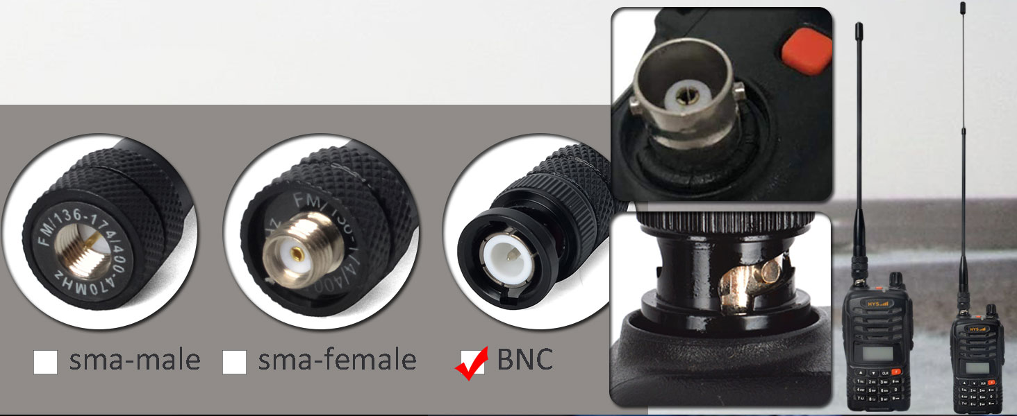 Purchased one of these for 1980's Yaesu FT-530 dual band HT. Nice BNC connector and well made. Perfect 8" for everyday use. Bonus if you want a 14", gently pull the top of the antenna and "thin wire" 6" will slide out from center of antenna. Works extremely well for its price. Better 2meter & 440 trans-receive than some of my $25-$35 Diamond, Comet, etc. So impressed with performance and the telescopic design that I purchased 2 more to store away. I paid $39 for a Diamond BNC metal telescopic that is approx. 6" when closed and 13" when fully extended. Only can transmit on Diamond when extended without radio damage. This HYS performs flawlessly with same range of local repeater (18 miles away) @ 1 watt without extending the hidden thin wire. My fav antenna out of 5 diff BNC's