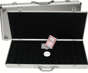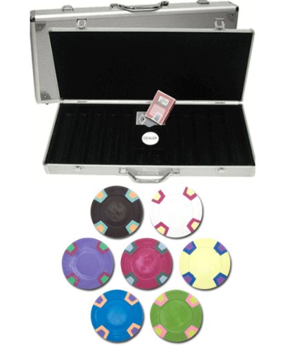 These are the new "DOUBLE TRAPEZOID" blank clay composite poker chips from Claysmith Gaming. Claysmith offers true casino quality poker chips for the home player. This is the DOUBLE TRAPEZOID poker chip design. These chips have a double trapezoid pattern for its edge markings. The layout of this poker chip is similar to popular casino chips. Claysmith Gaming is synonymous with poker quality. Claysmith brings casino aestheticism with fresh new designs to your home game. Claysmith poker chips feel and look substantial, which enhances your playing experience. Most home use poker chips are just a component of the game. Claysmith chips are a part of the enjoyment of the game. Players are excited when they hear that you will be playing with Claysmith chips in your poker game. You will be proud when you set them on your table. These chips are available in 7 different colors: black, white, purple, red, orange, blue, and green. This is the 500 Ct clay composite poker chip set from Claysmith Gaming in an aluminum case. This set includes 500 of the finest casino grade clay composite poker chips, a free dealer buttonS, 5 dice and 2 decks of playing cards. Claysmith offers true casino quality poker chips for the home player. This is a high quality aluminum case. Our cases all have wood slots and NOT plastic slots like other products. This case has cutouts for 2 decks of cards. The interior is black. For shipping protection, this case is enclosed in styrofoam. This standard set-up includes: 150 - White, 100 - Red, 100 - green, 100 - black, 25 - purple, 25 - yellow (you may also customize this set by emailing us with your chip selection - see note below). NOTE: YOU WILL RECEIVE 500 NEW CHIPS PER ORDER (WITH ALUMINUM CASE). PLEASE CHOOSE CHIPS VIA EMAIL AFTER PURCHASE. IF NO SELECTION IS MADE, WE WILL SEND THE STANDARD ASSORTMENT. SUBJECT TO AVAILABILITY.