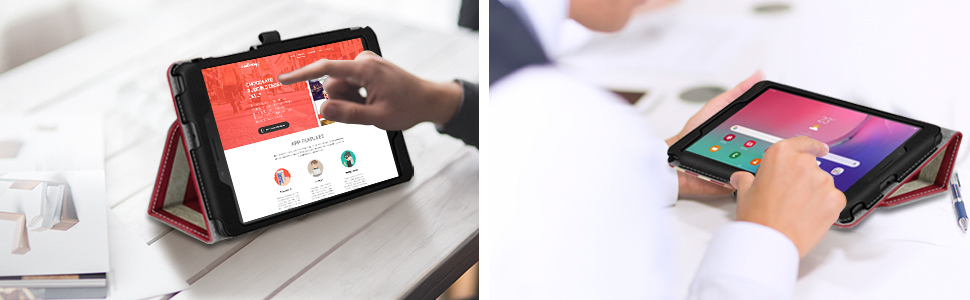 The Fintie Folio Case is a slim, premium vegan leather cover designed exclusively for the Samsung Galaxy Tab A 8.0 (2019) SM-T290/SM-T295 models. It features corner protection, a soft microfiber interior to prevent scratches, a magnetic closure, and a flip cover that doubles as a horizontal stand. With a built-in stylus holder and a lightweight design, it combines style and functionality for professionals on the move.