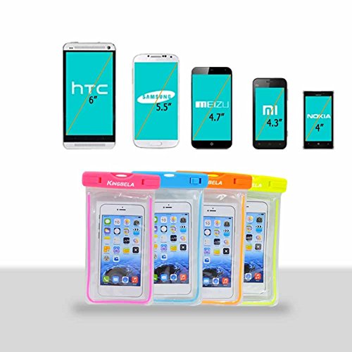 Kingbela universal waterproof Case for large Smartphones with diagonal up to 6.0" (Certain big screen phones need to remove protective case) With a secure "Snap Lock System", it allows you to submerge your device up to 100 feet deep without worrying about water damage The case features crystal clear window on both sides, allowing you to take pictures or videos, checking your emails and all other touch screen functions whether you are swimming, fishing, boating, or having water funs Fits the following devices (and any other device with a 6.0" diagonal or smaller): Samsung Galaxy S5 S4 S3 ; Samsung Note 3 / 2 / 1 ; iPhone 5 5S 5C 4S 4 ; iPhone 6 4.7" ; iPhone 6 Plus 5.5" ; iPod Touch ; LG G2 G3 ; HTC One M8, M7, Max ; Nexus 5, 4 ; Sony Z1, Z2 ; Nokia Lumia 1520, 520, 630, 930 ; BlackBerry Z10, Z3, Z30 ; Motorola MOTO X, MOTO G, E