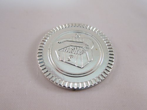 It is the coin of a plastic toy. Because storage bag with two pieces, it is convenient for carrying around!