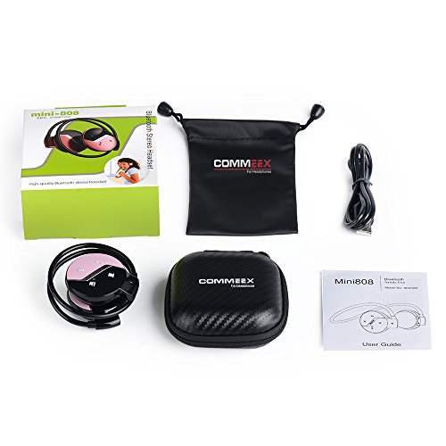 Package include: Bluetooth headset x 1 USB charging cable x 1 User manual x 1 Storage Box(Black) for Headphone x 1 Storage Bag(Grey) for Headphone x 1 Getting to know your bluetooth stereo headphone 1.multi-function button:bluetooth power on/off answer hang up 2.forward button 3.backward button 4.play/pause 5.led indicator:displays the status of the headset 6.volume up button 7.volume down button 8.micro usb power charging port 9.microphone Technical parameter: Frequency scope: 2.402-2.480GHz Bluetooth version: V4.0+EDR Support protocol:Bluetooth headset,hands-free device A2DP and AVRCP,voice prompt, voice control. Transmission distance: 10M Sensitivity: 0.1% BER at -80dBm RF output power: -6dBm to 4dBm Music time: 8 to 10hours Battery:3.7V/260mAh can charge lithium battery Weight:0.102pounds Product dimension:1.77 x 0.67 x 1.77inches Turning on/off mini-808 the bluetooth power on:hold multi-function button for about 3 seconds then release when the indicator red and blue light flashing bright at the same time ,the red light flash ,hear voice prompt from the headset it means power on ,the bluetooth power off:hold multi-function button for about 3seconds then release ,the red light will be slow flashing double times ,then no lights it means headset power off